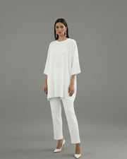Pair it with heels and statement earrings for a sophisticated evening ensemble or with flats for a minimalist day look. The crisp white tone radiates confidence and versatility, making this co-ord set a must-have for women who adore clean lines, comfort, and understated luxury.