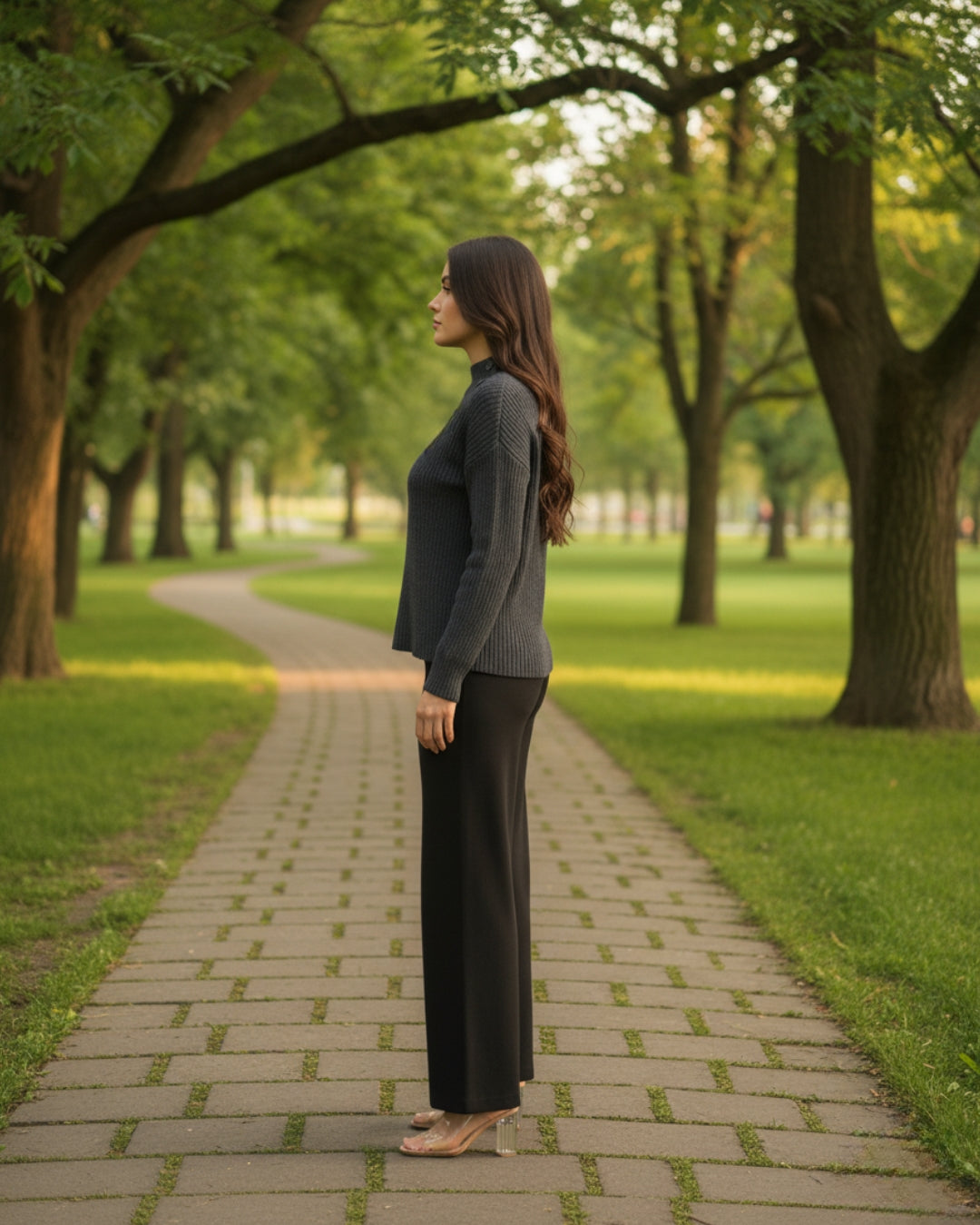 This versatile grey ensemble pairs beautifully with heels for a polished outing or sneakers for laid-back elegance. Its neutral tone makes it a timeless addition to your collection — understated, graceful, and endlessly wearable. A must-have piece for those who believe simplicity is the ultimate sophistication.