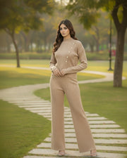 Elara - Light Beige Button Detail Cardigan Set