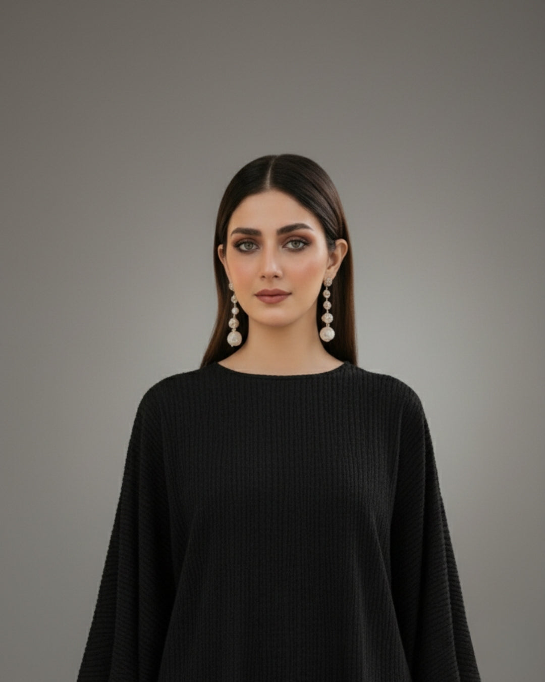 Redefine effortless sophistication with this black oversized knitwear co-ord set. Designed with a flowy silhouette and soft textured knit, it brings together elegance and comfort in perfect harmony. The deep black hue adds timeless charm — a must-have for every woman who loves understated luxury.