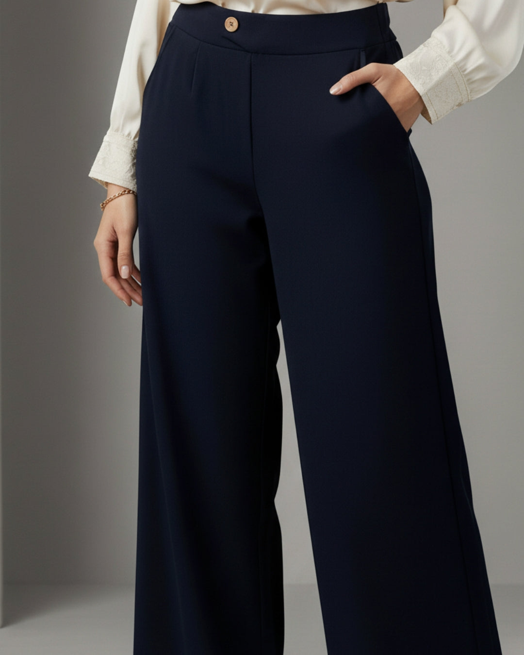 Sleek, sophisticated, and endlessly flattering — these navy blue wide-leg pants redefine power dressing with effortless grace. Designed for women who embrace confidence in every stride, this piece transitions seamlessly from work to evening wear.